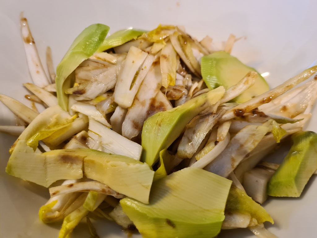 Perchè l’insalata belga? In mancanza delle puntarelle, che non sempre si trovano nel banco del supermercato, ho provato a condire l’insalata belga con la stessa emulsione aggiungendo anche qualche tocchetto di avocado ed il piatto è stato molto apprezzato. A questo punto non vi resta che provare anche Voi questa ricetta.