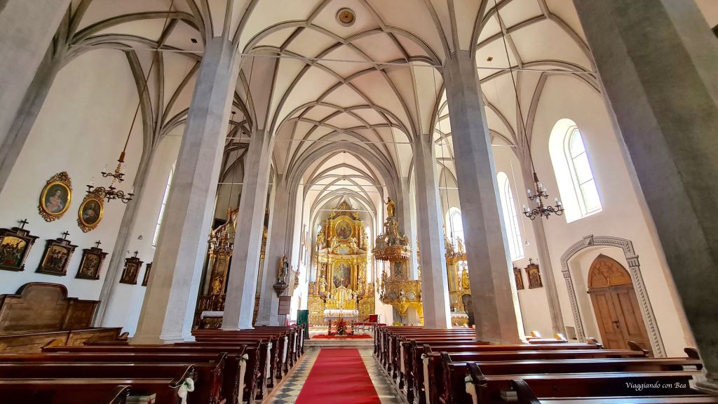 La solita ed immancabile visita alla Chiesa del borgo è d’obbligo. La trecentesca parrocchiale gotica Maria Himmelfahrt, consacrata nel 1339, ripercorre la storia della città del 14° secolo. Ha un interno a tre navate e racchiude antiche tombe e ricchi altari del ‘700.  Alle spalle della Chiesa c’è un ossario gotico risalente al XIV secolo.