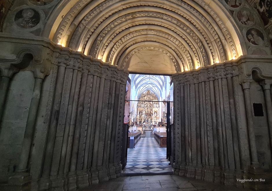 ci introduce all’atrio interno dove, con un solo colpo d’occhio cattureremo la bellezza di quelle tre navate che corrono lungo la chiesa fino all’altare maggiore.