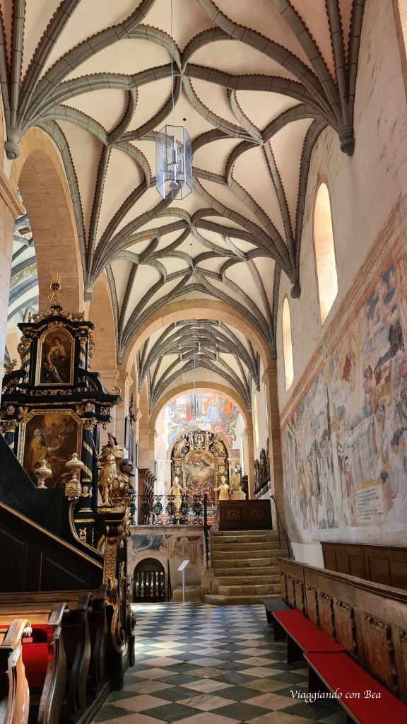 A Gurk non aspettatevi di esplorare un borgo dalle case colorate con negozietti e barettini, qui ci vieni esclusivamente per la sua Cattedrale che rappresenta il traguardo del pellegrinaggio sulle orme di Santa Emma “patrona della Carinzia”. Il Duomo di Gurk, imponente struttura in stile romanico del XII secolo, è uno degli edifici di arte sacra più importanti dell’Austria. Grazie alla cooperazione di molti grandi artisti qui trovi un insieme di stili diversi perfettamente amalgamati tra loro tanto da formare una grande opera d’arte (info lette sull’opuscolo multilingue consegnatomi all’ingresso).