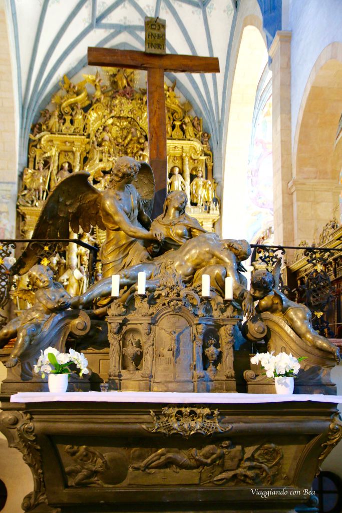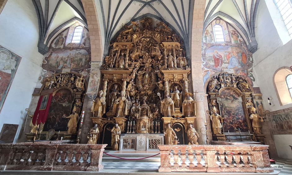 L’altare maggiore, realizzato tra il 1625 ed il 1632, con i suoi 16 m di altezza e 9 di larghezza occupa quasi tutta l’abside. L’altare contiene 72 statue e 82 teste d’angelo.