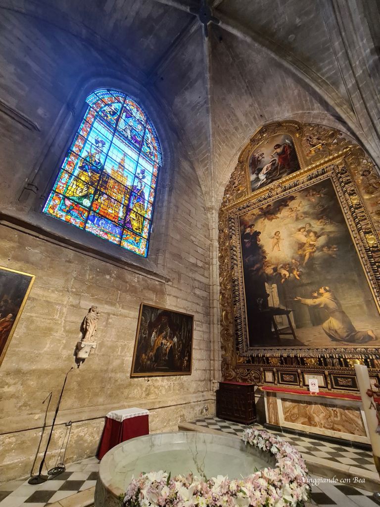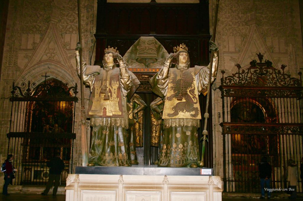 Andando verso l’abside si presenta dinanzi a noi la cancellata settecentesca della Cappella Reale (1552-1575). Questa cappella è riservata all’adorazione del SS Sacramento quindi non visitabile. Al suo interno sono custodite le tombe di Re Alfonso il Saggio e della madre Beatrice di Svevia. In un’urna di cristallo del 1710 sono custoditi i resti di San Ferdinando III. Di questa meraviglia ho potuto cogliere in uno scatto solo la bellezza della cancellata e della cupola riccamente ornata.