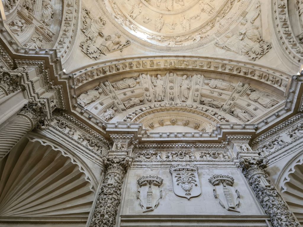 Tra le tante cappelle, sicuramente una più bella dell’altra, ci soffermiamo dinanzi alla Capilla Mayor che, all’interno della ricca cancellata che la racchiude, custodisce una maestosa pala d’altare ispano-fiammingo che pare sia la più grande del mondo.