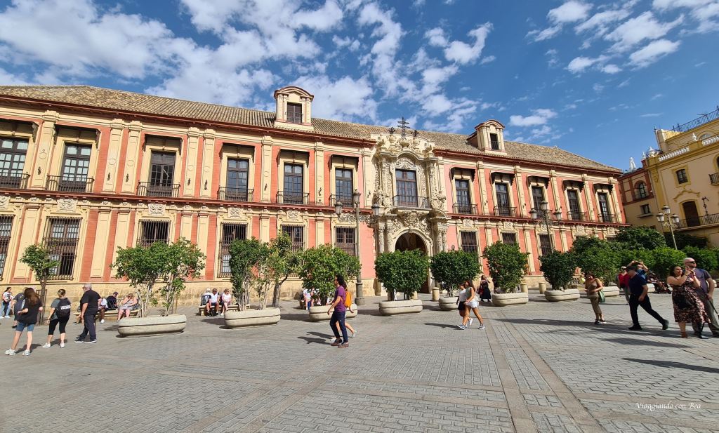 Soddisfatti della visita attraversiamo il Patio de los Naranjos e da lì verso la Puerta del Perdón. Bellissima Plaza de la Virgen de los Reyes, sulla quale si affaccia la facciata del cinquecentesco Palacio Arzobispal.