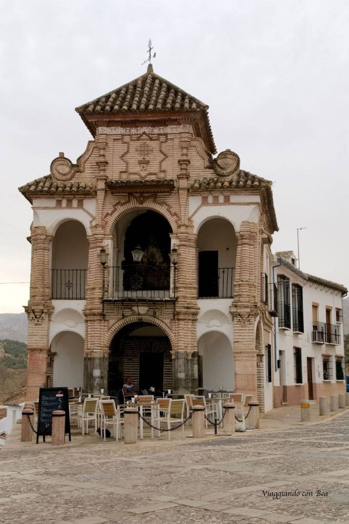 Ritornando sui nostri passi il primo stop lo facciamo dinanzi allaCapilla de la Virgen del Socorro in Plaza del Portichuelo. Questa piazza rispecchia in pieno l’architettura e l’atmosfera tradizionale andalusa. La Capilla de la Virgen del Socorro venne edificata nel 1715 in stile tardo barocco. Presenta due piani di loggiati ed un sottotetto chiuso a forma di cubo. Questa cappella unitamente ad altre cappelle, edificate in Antequera, è dedicata alla devozione della Vergine del Socorro. Peccato sia visitabile solo esternamente.