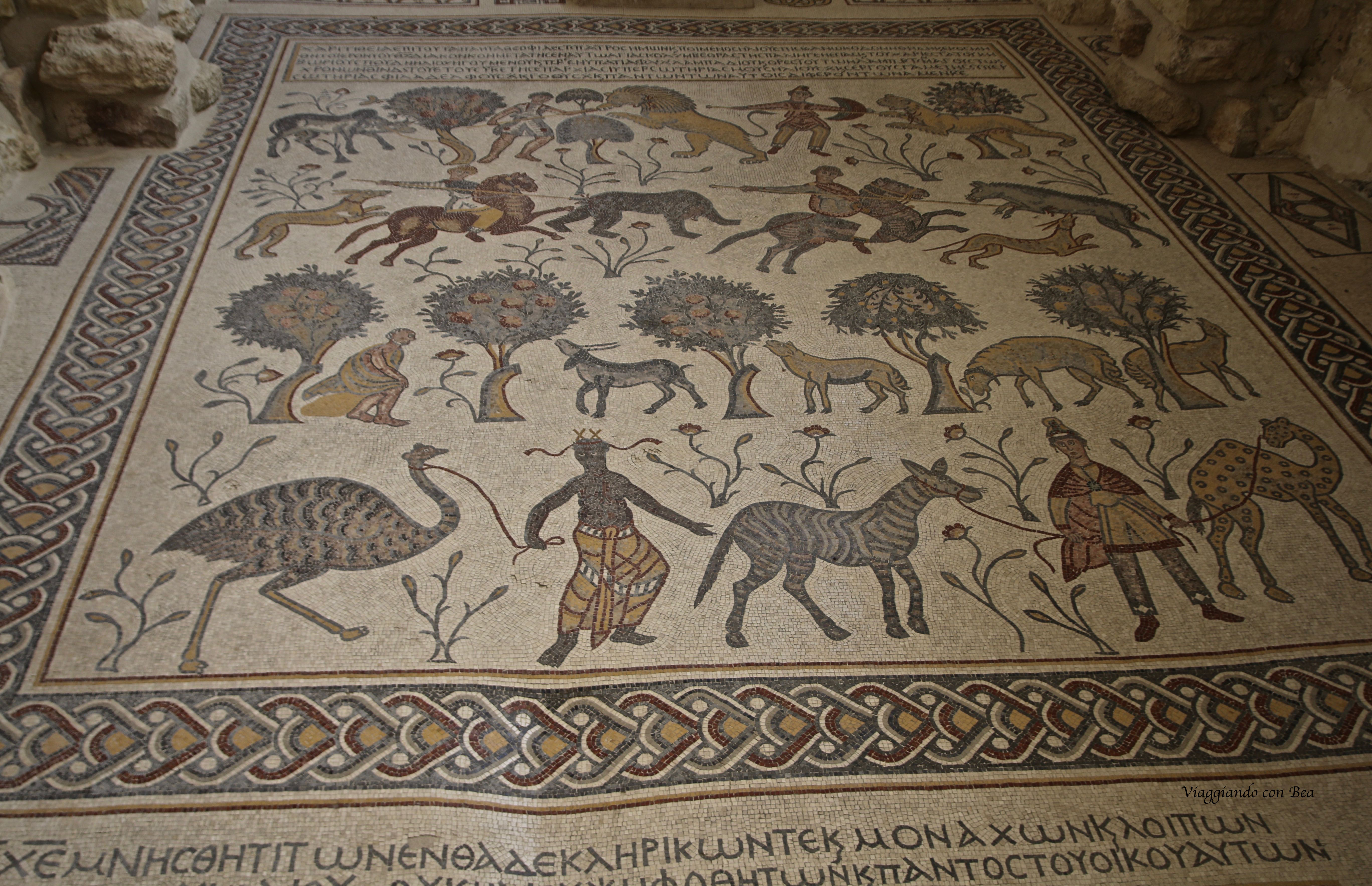 Continuando la nostra passeggiata, tra ulivi e stupendi paesaggi, si giunge ad una tettoia che protegge alcuni antichi mosaici ritrovati nelle chiese della vicina Khirbet al-Mukhayyat.