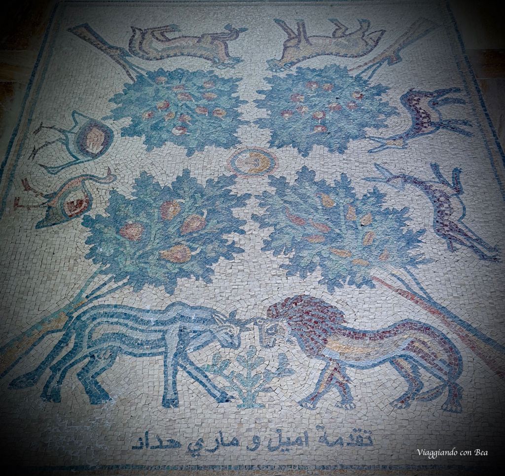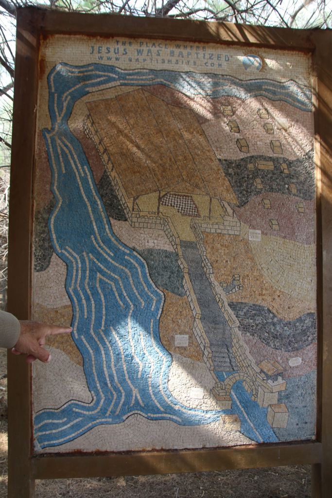 S’ imbocca uno stretto sentiero immerso tra gli alberi. Lungo il percorso ci viene mostrato un mosaico che raffigura il sito di Betania oltre il Giordano.