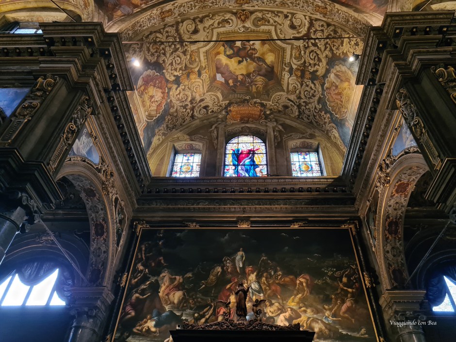Un tripudio di marmi, di affreschi e persino la fila di confessionali, realizzati dalla famiglia Fantoni, è magnifica. Volgendo lo sguardo verso l’altare maggiore impossibile non notare la balaustra in bronzo di Corinto o le casse preziosamente intagliate dei due organi.