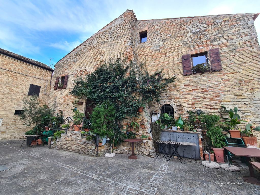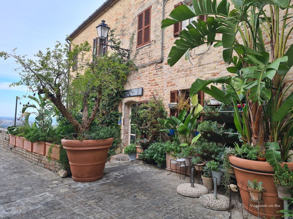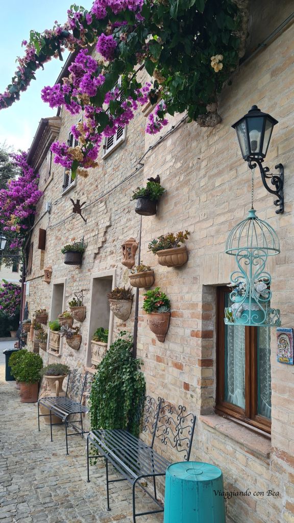 Torre di Palme è un piccolo borgo arroccato in cima ad un colle affacciato sul mare. E’ quasi nascosto tra le colline marchigiane ed ha conservato il fascino di altri tempi grazie alla sua architettura medioevale così ben conservata. Non hai bisogno di una mappa, devi solo parcheggiare e assaporare ogni singolo passo lungo quell’unica via rettilinea che attraversa il borgo. Qui tutto è perfetto. Una fila di case dalle facciate in pietra, deliziosi cortili fioriti, qualche scorcio qua e là, un  susseguirsi di antiche chiesette ed un silenzio che ti accompagna lungo il percorso e ti trasmette una  sensazione di pace.