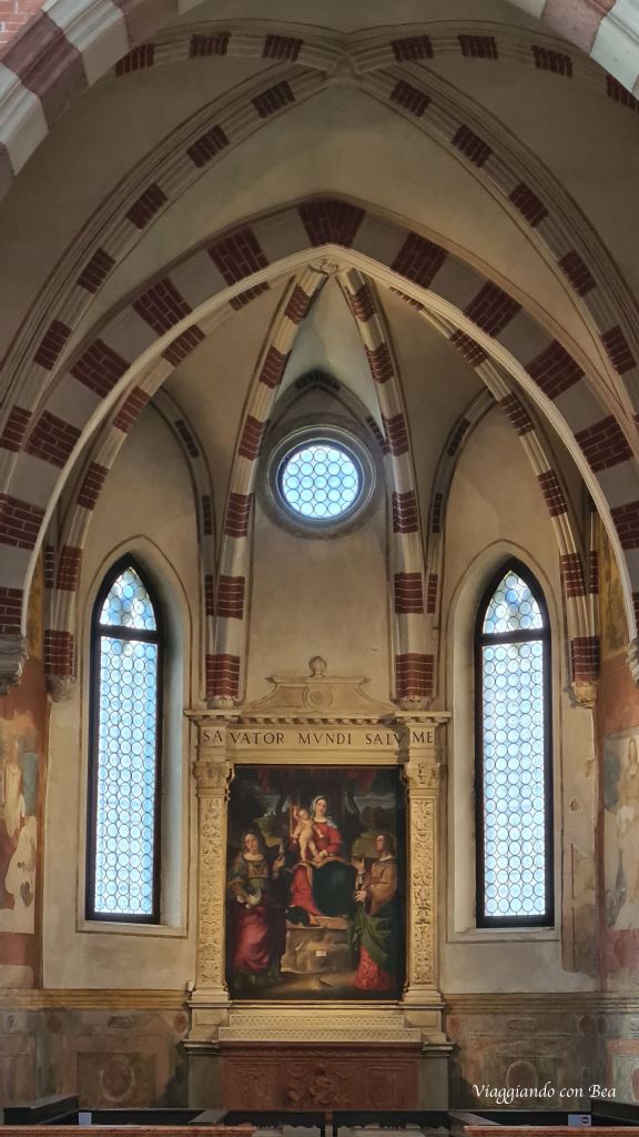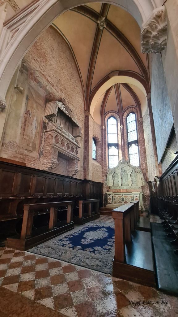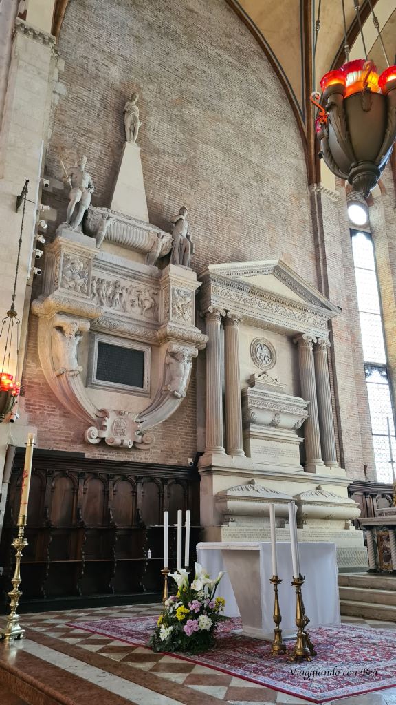 La visita di Vicenza continua verso una delle vie più animate della città, Corso Fogazzaro. Impossibile non continuare a camminare con il naso all’insù.  Sulla via si affacciano splendidi palazzi rinascimentali e barocchi fino a giungere alla Chiesa francescana di San Lorenzo. Venne edificata a partire dal 1280 per conto dei Frati Minori Conventuali. La facciata in laterizio ha un magnifico portale trecentesco ricco di sculture e fiancheggiato da arche sepolcrali. Da notare la lunetta del portale dove è raffigurato Pietro il Nano inginocchiato davanti a Maria. Nella facciata possiamo notare, incastonati nelle arcate laterali, quattro sarcofaghi trecenteschi posti su mensoloni e coperti da  baldacchini  in pietra. All’interno dei sarcofaghi sono custodite le spoglie di uomini illustri.