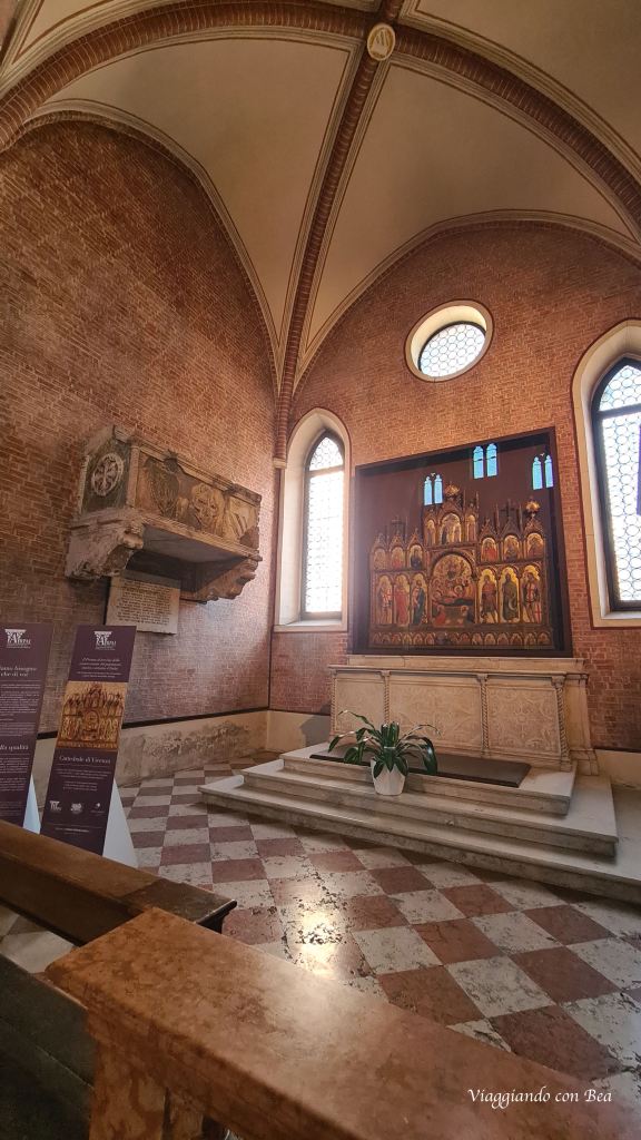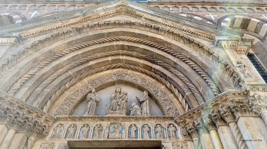 L’interno gotico ha una sola ampia navata con volte a crociera e cappelle laterali. Una scalinata ci introduce al ricco presbiterio che racchiude dipinti di Francesco Maffei ed il bel polittico di Lorenzo Veneziano con ben 29 tavole. L’altare maggiore è stato realizzato con pietre e marmi pregiati. Non dimenticatevi di visitare il vasto sotterraneo della cattedrale dove sono conservati resti di edifici preesistenti.