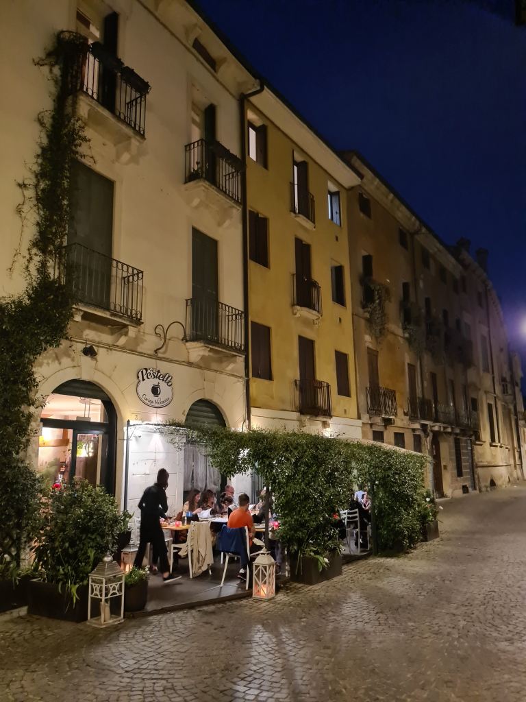 Nonostante la stanchezza, si rientra in albergo per una doccia, un cambio veloce e via ancora per le strade di Vicenza alla ricerca del ristorante prescelto “Al Pestello”  Un ristorante storico nel cuore della città dove la passione di Elena e Riccardo la si evince dai piatti che ci hanno proposto e che abbiamo gustato dal primo all’ultimo boccone. Uno degli obiettivi che Elena e Riccardo si pongono è quello di far star bene le persone e qui noi non ci siamo stati bene, ci siamo stati