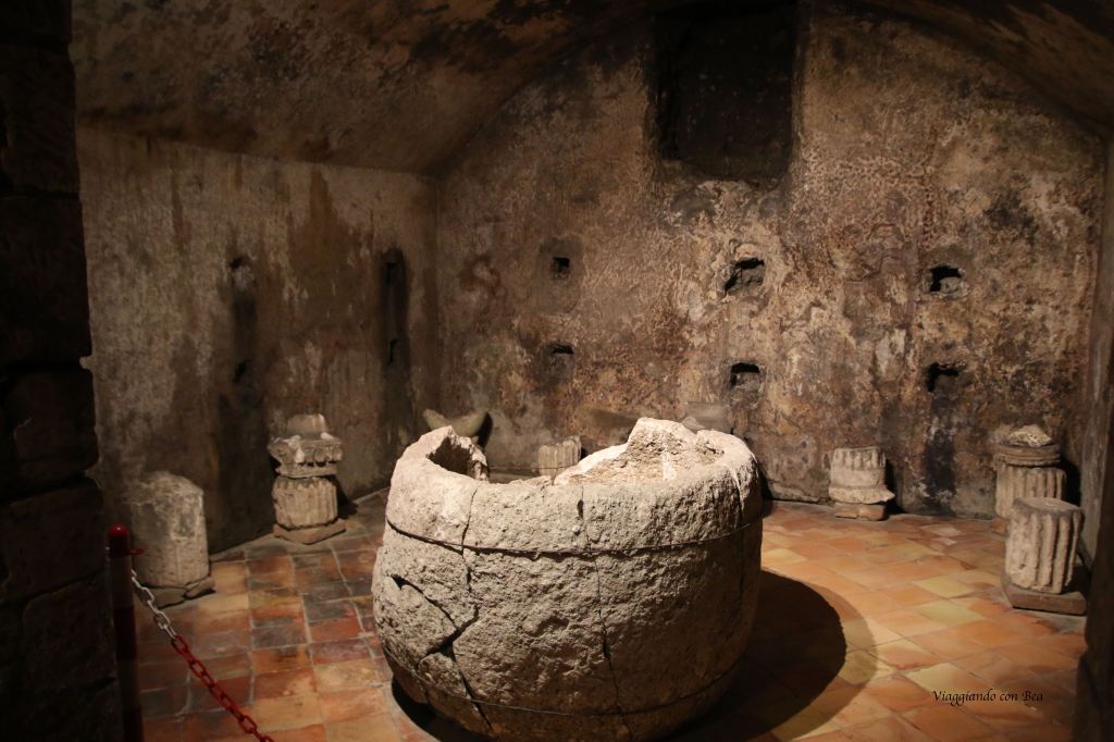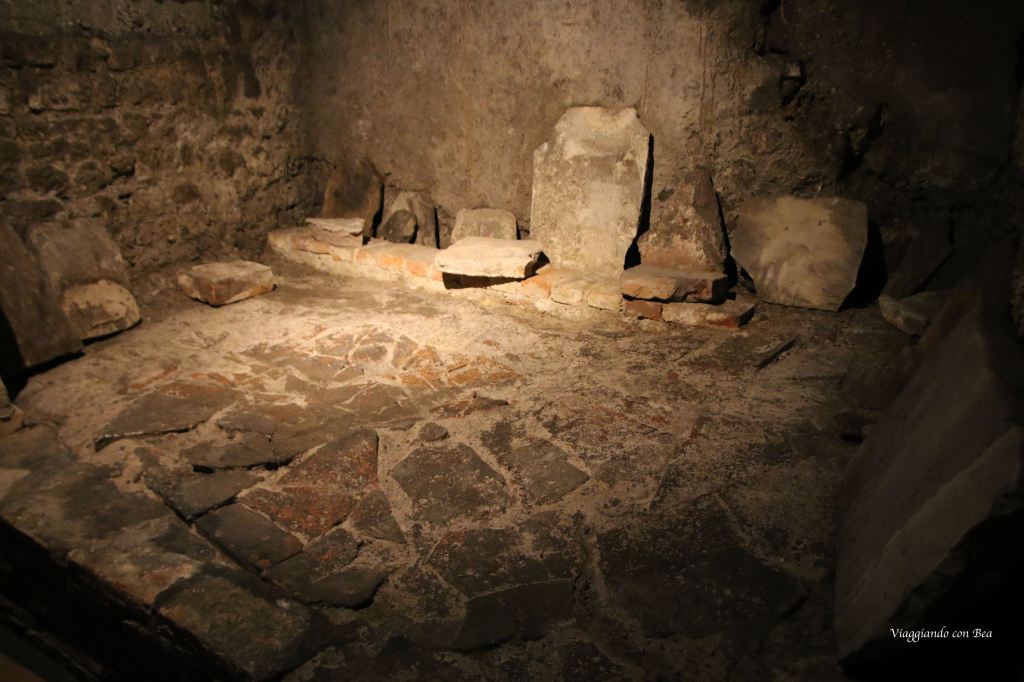 I resti del criptoportico risalgono al I sec. d.C. e si presume facessero parte di una ricca casa urbana di Vicenza. Rappresenta uno dei pochissimi esempi superstiti in tutta l’Italia Settentrionale per questo tipo di ambiente sotterraneo. Il criptoportico era la parte del piano interrato di una casa ed, in particolare, era la parte su cui sorgeva il porticato. Le pareti erano rivestite con una mistura che le rendeva simili al marmo. In vari punti del percorso la guida ci fa notare tre tipi diversi di pavimentazione.