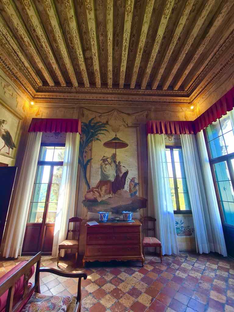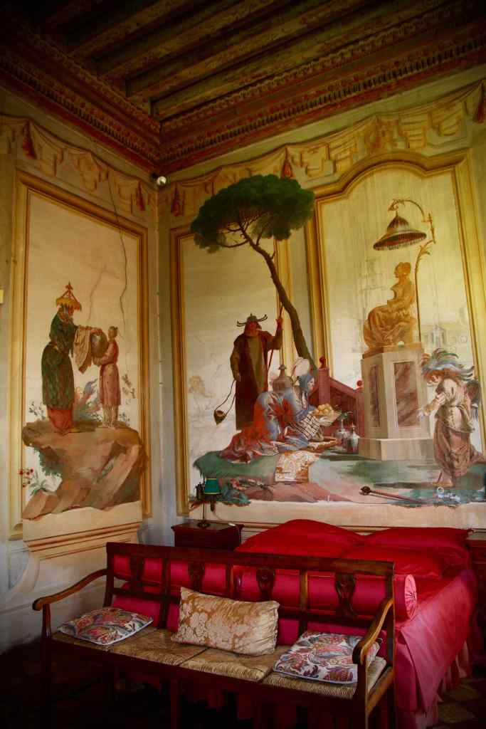 In una sala siamo letteralmente catapultati nella lontana Cina e qui Giandomenico Tiepolo, che non è mai stato in Cina, ha immaginato un paese di una straordinaria bellezza popolato da uccelli incredibilmente enormi.