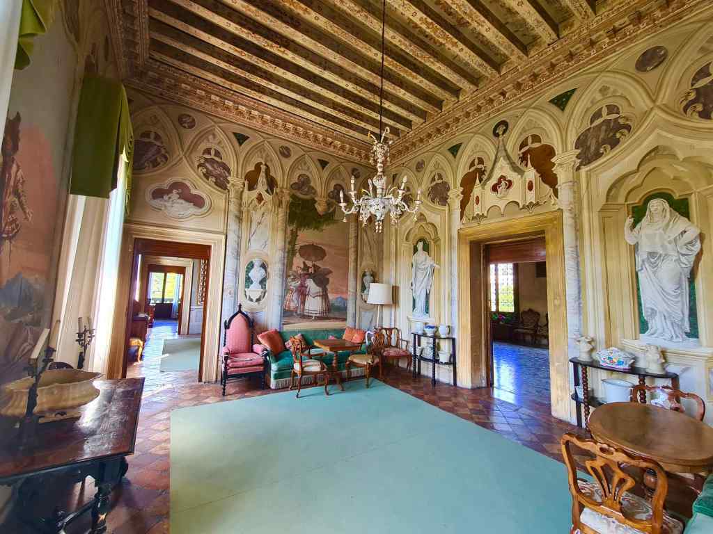 Tra i flutti marini appare Teti, madre di Achille, che cerca di consolarlo. Tutte le pitture della villa furono realizzate nel 1757 e quelle presenti nella Sala dell’Iliade rappresentano episodi relativi al primo libro del poema di Omero sulla Guerra di Troia. Nella sala successiva, la Sala dell’Orlando Furioso, troviamo il cavaliere Ruggero, personaggio del poema di Ludovico Ariosto, che libera Angelica legata dai pirati ad uno scoglio.