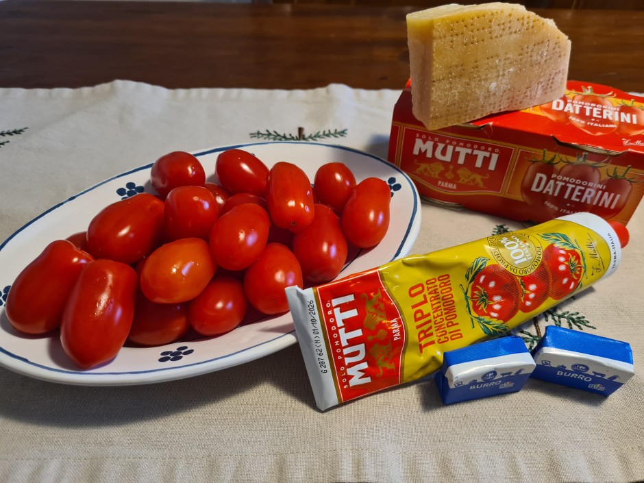 - 400 g di pomodorini ciliegino freschi, Bea in casa aveva solo i datterini