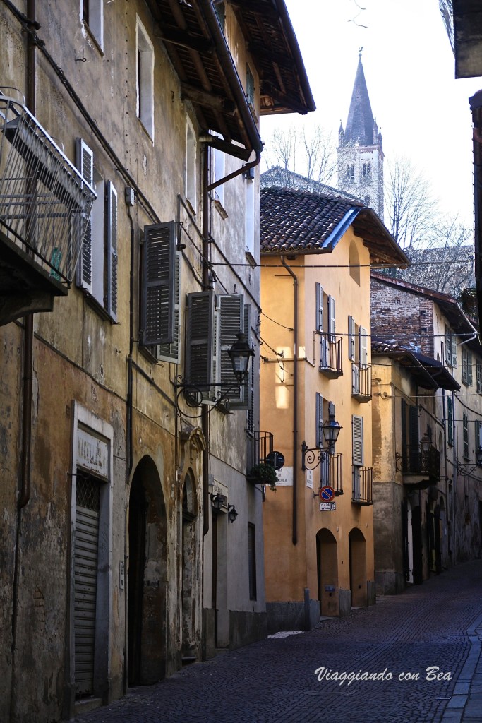 Il nucleo storico si apre a ventaglio sulle colline ed è sovrastato dal massiccio torrione cilindrico dell’antico Castello detto “Castiglia”. Vi si arriva percorrendo una ripida salita che da viuzza in viuzza ci porta alla scoperta della suggestiva chiesa di San Giovanni o della rinascimentale “Casa Cavassa”. Senza una meta ben precisa abbiamo passeggiato tra i vicoli silenziosi del nucleo antico su cui si affacciano magnifici palazzi di un colore rosso mattone e vecchie case in pietra che conducono a stretti passaggi.