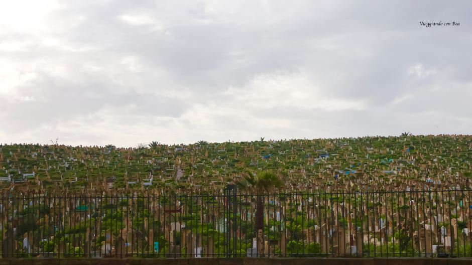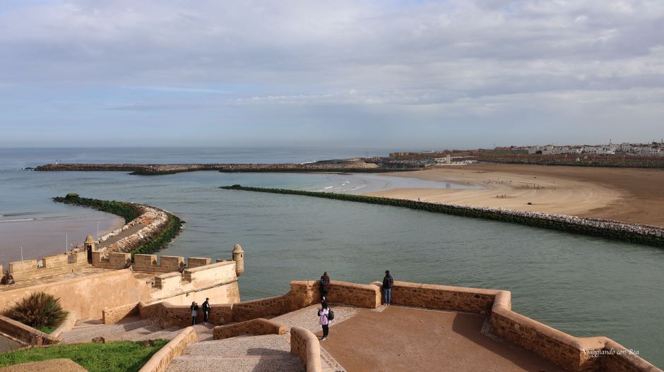 Da qui la vista sull’Oceano Atlantico e sulla foce del fiume Bou Regreg è spettacolare. Di fronte a noi si stagliano le basse case della città di Salé.