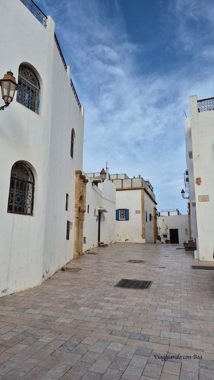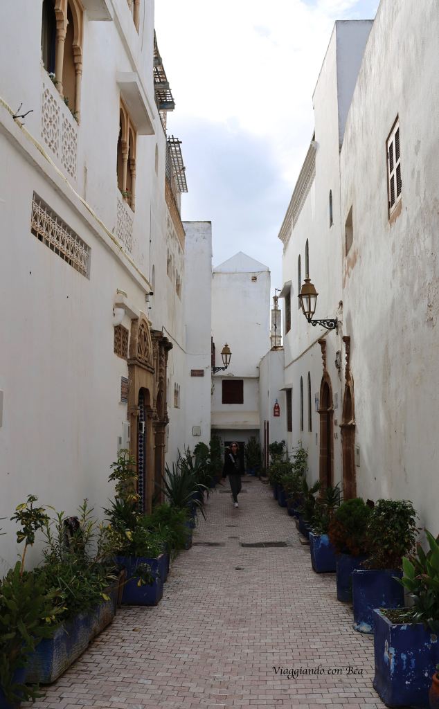 Imbocchiamo Rue Jemaa, la strada principale che attraversa la Kasbah con un magnifico dedalo di viuzze sulle quali si affacciano case basse di un bianco candido; non si può non rimanere sorpresi da quanto questa città sia curata.