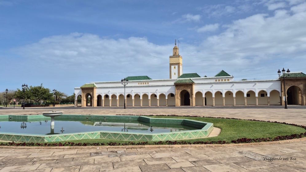 L’ultimo stop velocissimo di questa bella città viene dedicato al Palazzo Reale (Dâr-al-Makhzen). Sebbene la residenza ufficiale dei sovrani del Marocco non sia visitabile uno sguardo nell’area intorno al palazzo permette di apprezzarne la raffinata architettura. Scendendo dal pullman, si percorre la piazza Mechouar, un vasto spiazzo cerimoniale utilizzato per eventi reali e parate, dove trionfa il verde di giardini ben curati.