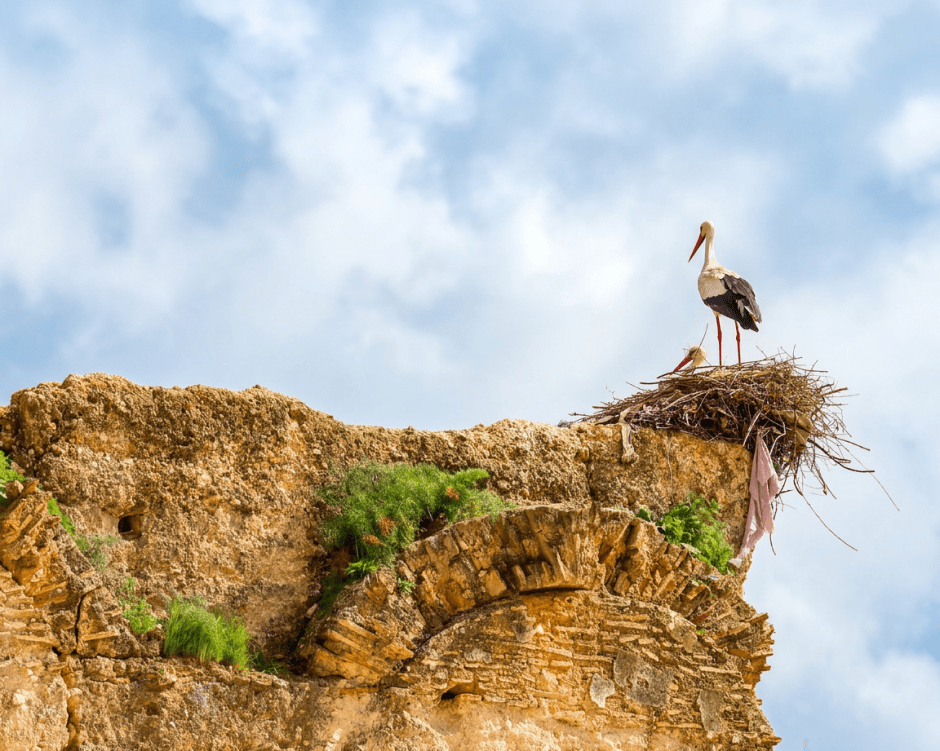 Meknès è, sicuramente, la meno appariscente tra le città imperiali. Nel nostro giro frettoloso abbiamo dedicato non più di un’ora a una passeggiata veloce tra le vie della Medina. Lungo il percorso ci vengono fatte notare delle bellissime cicogne che, appollaiate sui comignoli dei palazzi, sembrano controllare il passaggio dei turisti.